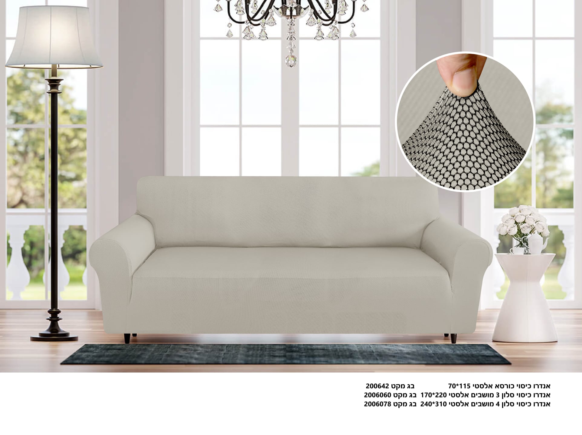 כיסוי לספה חד/דו/תלת מושבי שלם אלסטי נמתח על הספה בשלמות כמו כפפה ומתאים לספה שלך גם אם היא גדולה או בנויה בייחודיות ומכסה אותה לחלוטין הכיסויים שלנו נגד נוזלים קלים להלבשה ולהסרה, ומיועדים לכביסה במכונה.